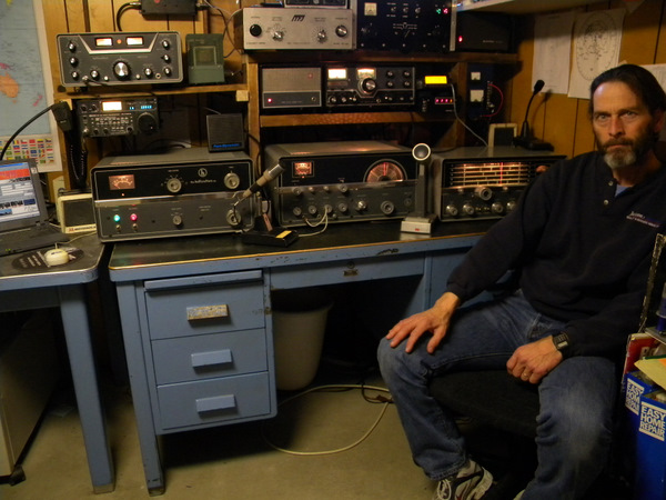 Chris warming the shack on a cold winter morning.