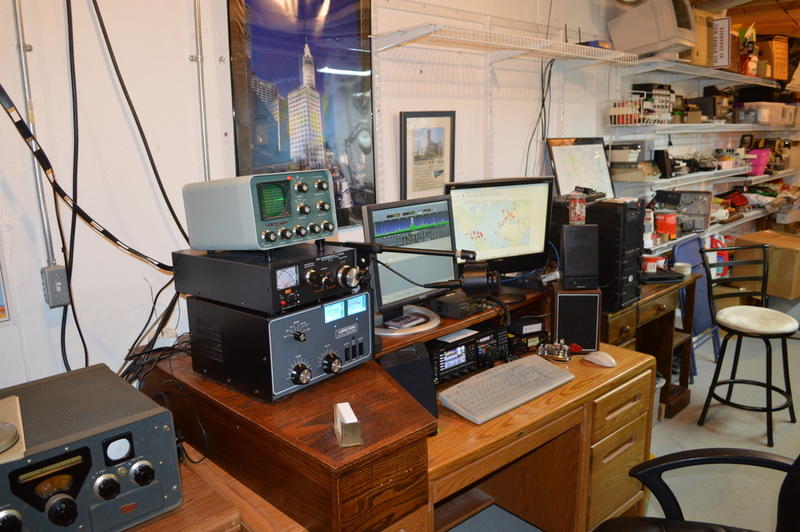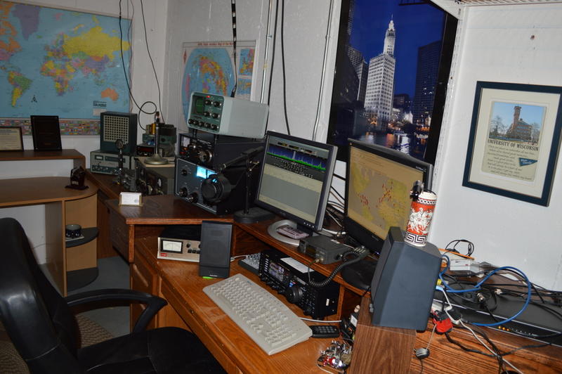This is the basement Rome, WI ham shack. Main rig is Yaesu FTDX3000 and SoftRock I.F. SDR receiver for panadapter display.