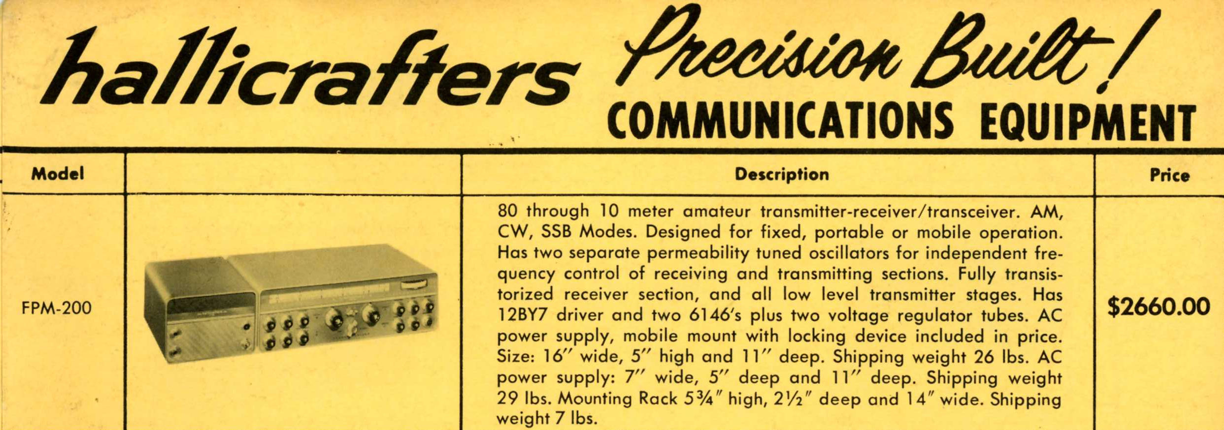 Click HERE to listen to the Amazing World of Shortwave Radio by Hallicrafters. The FPM-200 segment begins at 5:13 into the record.