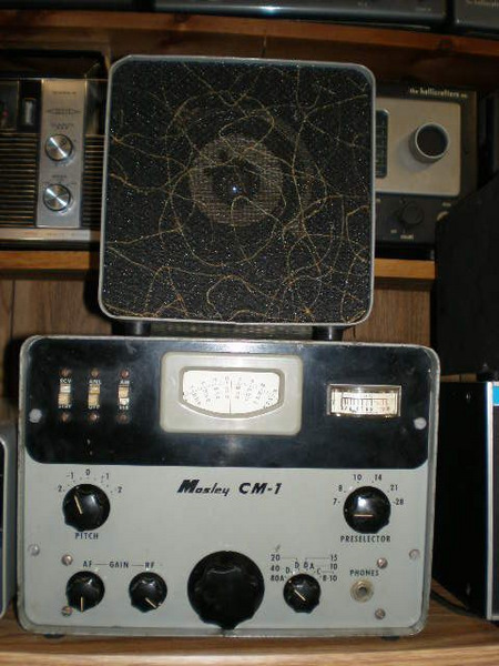 I've paired the Meteor up with the Mosley CM-1 receiver, a one-hit wonder from the famous St. Louis antenna maker. The CM-1 is a cool little receiver - it's basically a 75 meter receiver with a built-in crystal-controlled converter for 40-10 meters. It did all this, including a product detector, in a compact box using only five 6AW8A tubes, that sold for a price of $179 back in the early 60s. The fact that Mosley is known for its antennas but not for receivers pretty much says it all. Oh, by the way, that is the actual mating speaker on top of the CM-1. I found it in a guy's junk box at a hamfest for $2.00.