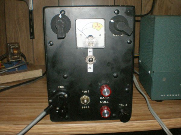 I was fortunate to find this unit mostly assembled, and only had to add some missing parts to finish it up. The meter? Well since the original builder had chopped a hole for one I dug in the junkbox for one that would fit...and this seemed perfect. (Note the absence of cracks). It's wired as a relative output meter to aid in carrier nulling. The most hard-to-find item is phase shift network - a B&W 350. This is a great way to learn how a phasing rig works and I'd love to hear from anyone who has one or is interested in building early gear like this. |