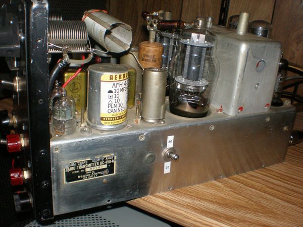 The basic circuit - a 9 mhz phasing exciter and 5 mhz VFO - was used by many other rigs, including the commercial transmitters built by Central Electronics, Lakeshore, and others. The attraction was the ability to get on the two most popular ham bands with SSB by selecting either the sum or difference of these two frequencies. The commercial rigs added mixing stages to reach the other bands, but this was the origin of the 5mhz VFO that carried over well into the transceiver era. W2EWL cleverly figured a way of fitting the needed circuitry onto the ubiquitous BC-456 chassis which was available then for $5 or so. He based his transmitter on the "SSB Jr" that appeared in GE Ham News in 1950, but made it much easier to build, and thanks to the 1625 finals, able to produce a usable signal (I can get close to 60 watts carrier output using an HP-23 power supply ). This low-cost design put countless hams on SSB for the first time and was even used mobile.